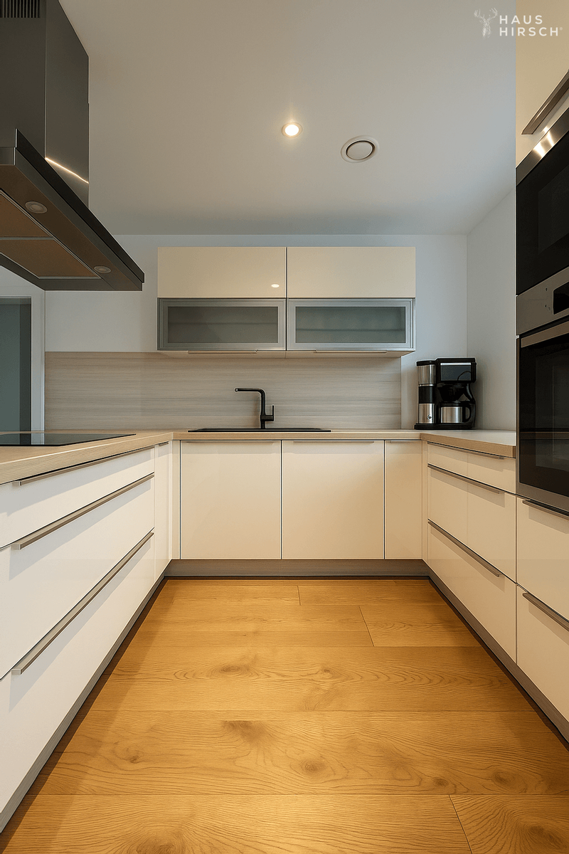 Die moderne, im Jahr 2017 installierte Einbauküche mit hochwertigen Geräten kann auf Wunsch übernommen werden. Sie ist nicht im Kaufpreis enthalten und wird gegen einen Aufpreis veräußert. Bei Interesse an der Küche oder weiteren Ausstattungsdetails stehen wir Ihnen gerne für individuelle Absprachen zur Verfügung.