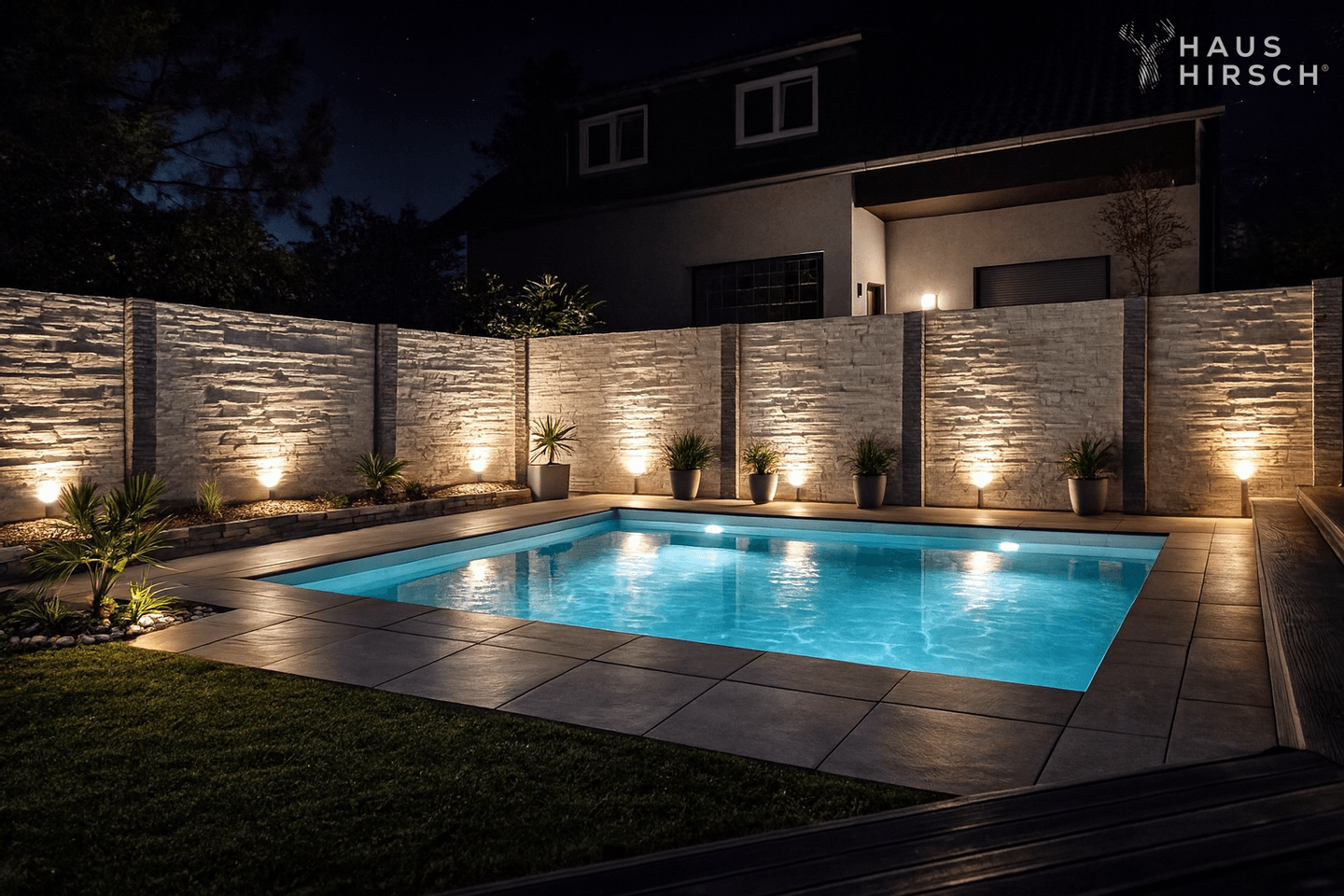 Ein besonderes Highlight ist der 2025 angebaute Wintergarten, der mit seinen großzügigen Glaselementen für lichtdurchflutete Übergänge zwischen Innen- und Außenbereich sorgt. Der liebevoll angelegte Garten begeistert mit viel Grün und einem beheizbaren Pool, der sich in den Wintermonaten sicher abdecken lässt – ein echtes Wohlfühlparadies für Groß und Klein.