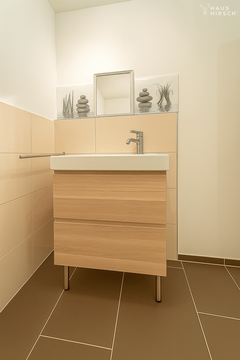 Das Untergeschoss ist sowohl über eine Treppe aus dem Erdgeschoss als auch über einen separaten Außenzugang erreichbar. Hier befindet sich ein ca. 35 m² großes Einliegerapartment mit eigenem Duschbad und Anschlüssen für eine Küche – perfekt als Gästebereich, für jugendliche Kinder, Pflegepersonal oder zur Vermietung.