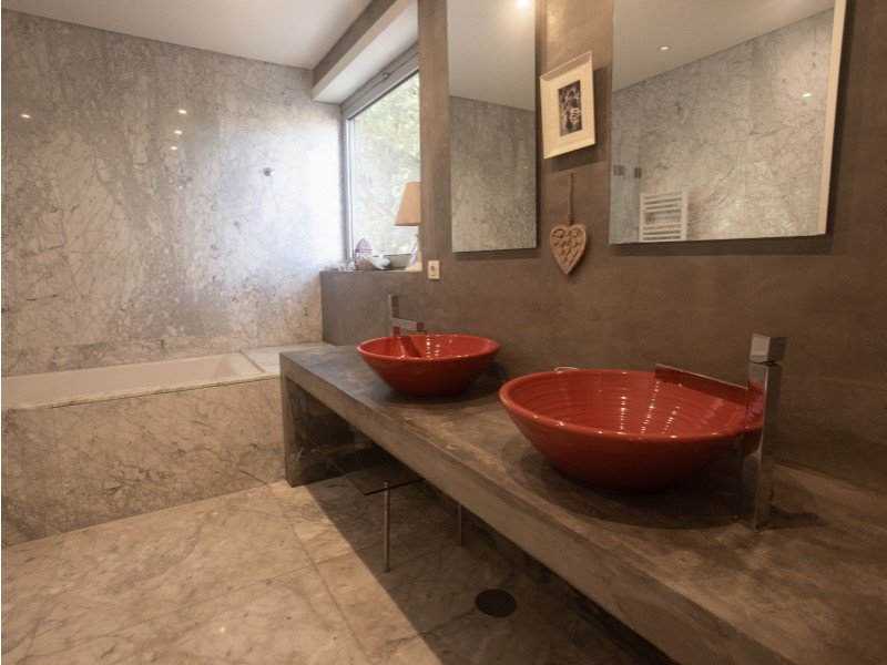Im Erdgeschoss befinden sich drei geräumige Suiten, die maximalen Komfort und Privatsphäre bieten. Die etwa 30 m² große Master Suite sticht durch ihren Platz und den privaten Balkon mit Blick auf den Garten und das charmante Baumhaus hervor und verstärkt das Gefühl von Ruhe und Nähe zur Natur.