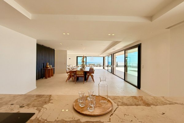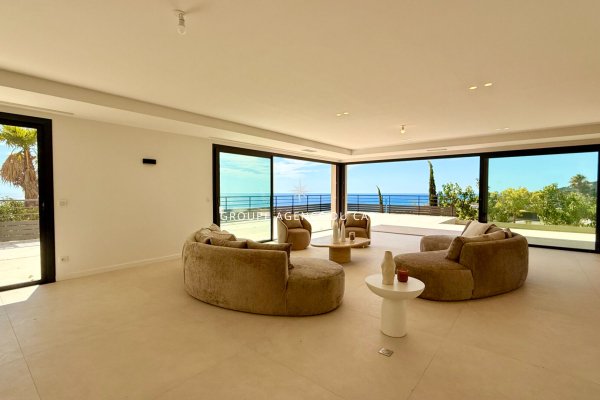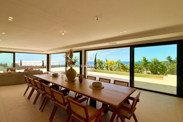 LIEFERUNG MAI 2025! Eingebettet in eine privilegierte Umgebung, fügt sich das Anwesen dank seiner zeitgenössischen Architektur perfekt ein, die durch einen üppigen Garten aufgewertet wird und einen Panoramablick auf das Meer bietet. Es erstreckt sich über vier Ebenen und bietet großzügige Räume und sehr hochwertige Dienstleistungen: Auf Straßenniveau garantieren eine 70 m² große Garage und technische Bereiche sowohl Praktikabilität als auch Diskretion. Auf der unteren Ebene befindet sich ein geräumiger Kinoraum, der sich ideal für Momente der Entspannung eignet. Auf der Hauptebene entfaltet sich das Leben um eine Küche, die sich zu einem hellen Wohnzimmer hin öffnet, mit direktem Zugang zu einer großen Terrasse, die durch einen herrlichen Infinity-Pool erweitert wird. Auf dieser Ebene befinden sich auch eine TV-Lounge, ein Fitnessraum, eine Suite sowie ein Hauptschlafzimmer mit eigenem Bad, ein Ankleidezimmer und ein angrenzendes Büro. Im Obergeschoss befinden sich fünf wunderschöne Suiten, jede mit Ankleideraum, Duschbad, WC und Zugang zu einer durchgehenden Terrasse, die einen atemberaubenden Blick auf das Mittelmeer bietet. Alle Ebenen sind mit einem Aufzug erreichbar, der täglich optimalen Komfort gewährleistet.