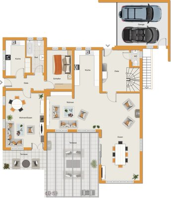 - Sehr großzügig: Wohn-Essbereich und offene Küche ca. 77 m².