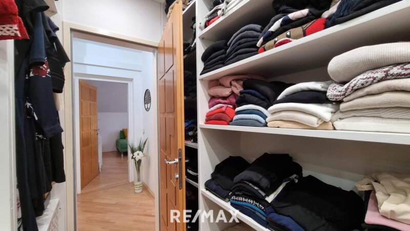 Der begehbare Kleiderschrank bietet viel Platz für Kleidung und Accessoires und ist optimal in die Raumaufteilung integriert. Das Schlafzimmer präsentiert sich als ruhiger, gemütlicher Rückzugsort, während das Kinderzimmer oder alternativ nutzbare Zimmer flexibel gestaltet werden kann – sei es als Kinderzimmer, Gästezimmer oder Homeoffice.