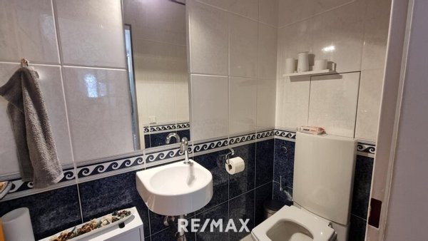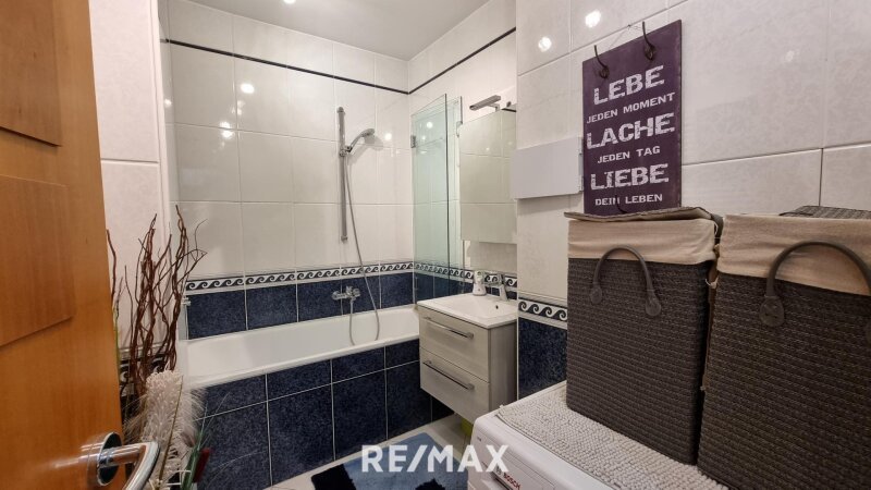 Das Badezimmer ist modern ausgestattet und lädt mit einer Badewanne zum Entspannen ein. Das separate WC sorgt für zusätzliche Funktionalität und Privatsphäre.