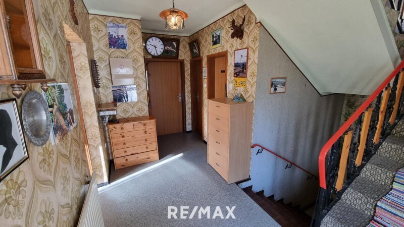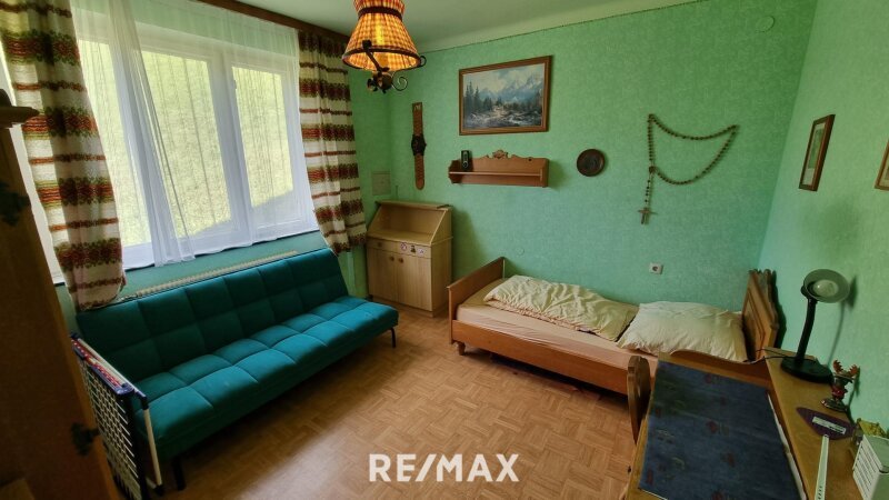 Über eine Treppe erreichen Sie das Obergeschoss. Hier befindet sich ein weiteres Badezimmer, ausgestattet mit einer Dusche, sowie ein weiteres separates WC. Zwei Zimmer bieten sich als Schlafzimmer oder Kinderzimmer an. Beide Räume verfügen über einen Zugang zum Balkon, von dem aus sich ein herrlicher Blick in die umliegende Berglandschaft genießen lässt.