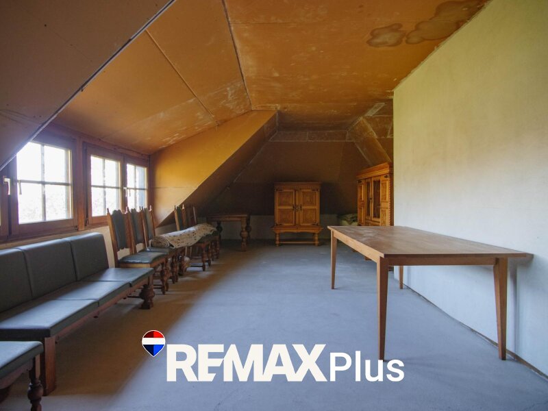Das Obergeschoss des Hauses ist noch nicht vollständig ausgebaut und bietet somit vielfältige Gestaltungsmöglichkeiten. Ob Sie eine Kanzlei, ein Büro oder zusätzlichen Wohnraum schaffen möchten – hier ist ausreichend Platz für Ihre individuellen Ideen.