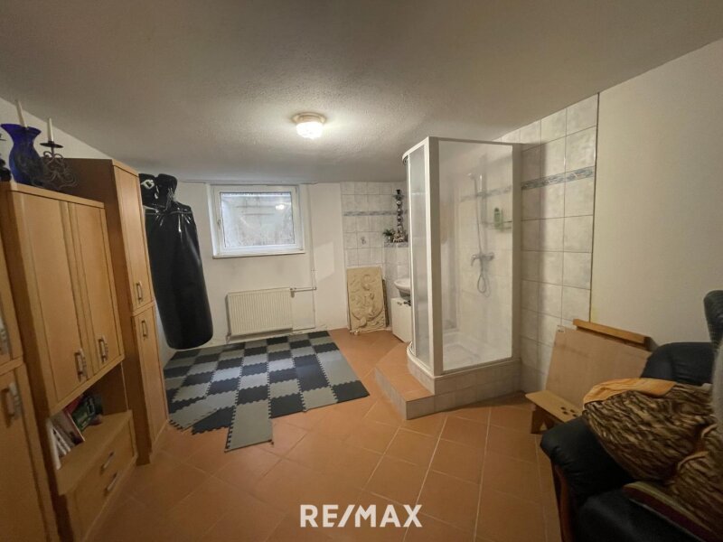 Im Keller befinden sich ein praktischer Heizraum mit Waschküche, ein Kellerraum mit integrierter Dusche sowie ein weiterer Abstellraum, der zusätzlichen Stauraum bietet. Ein Ausgang in den Garten ist vom Keller vorhanden.