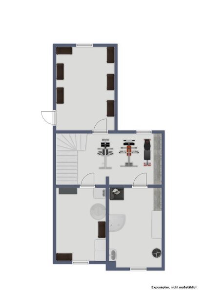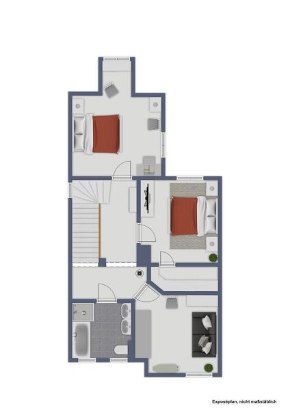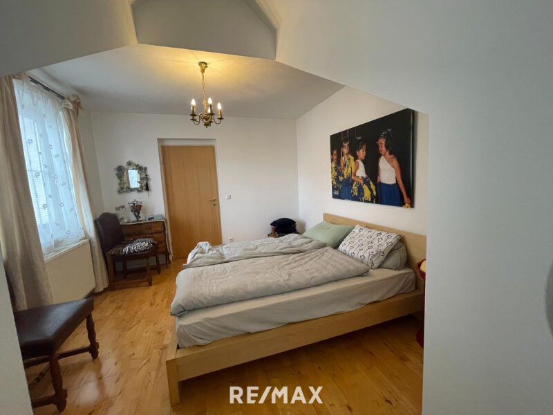 Über die Treppe erreichen Sie das einladende Loft, das mit einem kleinen Badezimmer und einem charmanten Schlafbereich überzeugt. Dieser Bereich eignet sich ideal als Rückzugsort oder Gästezimmer.