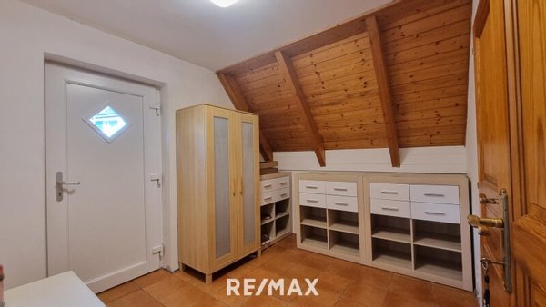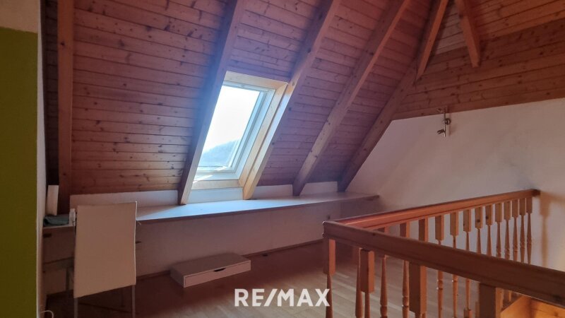 Über eine Treppe gelangt man in das Dachgeschoss, das zusätzlichen Raum bietet. Hier stehen ein offener Galeriebereich, ein weiteres Zimmer sowie zwei Abstellräume zur Verfügung.