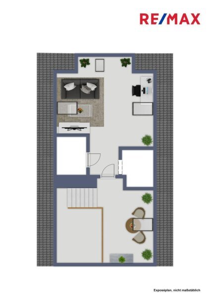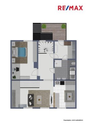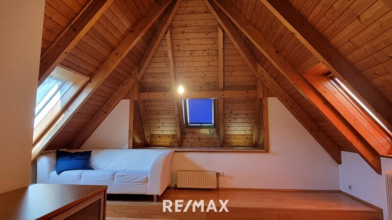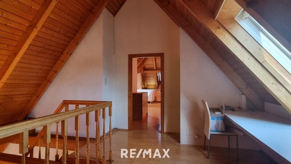 Über eine Treppe gelangt man in das Dachgeschoss, das zusätzlichen Raum bietet. Hier stehen ein offener Galeriebereich, ein weiteres Zimmer sowie zwei Abstellräume zur Verfügung.