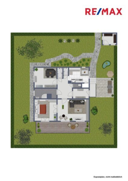 Lassen Sie sich faszinieren! Der idyllische Garten lädt zu entspannten Stunden mit der Familie ein. Besonders der Bereich neben dem Hauseingang eignet sich perfekt für eine schöne Gartengarnitur oder zum Grillen. Die weitläufige Grünfläche bietet viel Platz für Freizeitaktivitäten und Erholung.