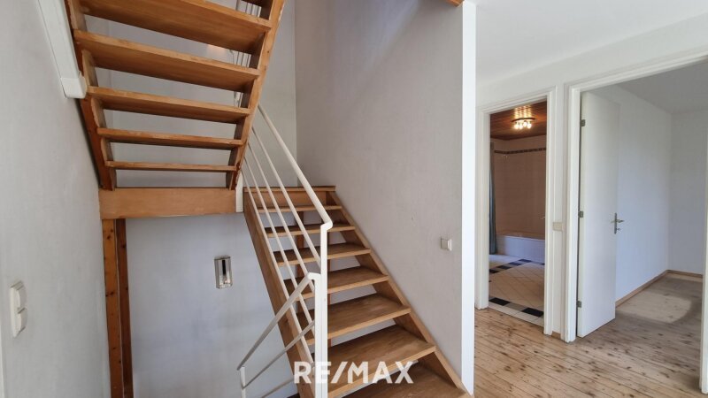 Im Obergeschoss erwarten Sie drei vielseitig nutzbare Zimmer, die als Schlafzimmer, Kinderzimmer oder Arbeitsräume dienen können. Ein Badezimmer mit Badewanne, ein separates WC sowie ein großzügiger Balkon bieten zusätzlichen Komfort und machen diese Etage zum perfekten Rückzugsort für die ganze Familie.
