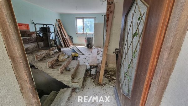 Zum Verkauf steht ein vollständig sanierungsbedürftiges Einfamilienhaus im Rohbauzustand, das sich ideal für Käufer mit handwerklichem Geschick oder für Projektentwickler eignet. Die