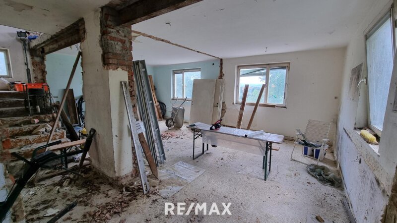 Zum Verkauf steht ein vollständig sanierungsbedürftiges Einfamilienhaus im Rohbauzustand, das sich ideal für Käufer mit handwerklichem Geschick oder für Projektentwickler eignet. Die Liegenschaft mit ca. 734 m² Grundstücksfläche bietet eine solide Grundlage zur individuellen Gestaltung.