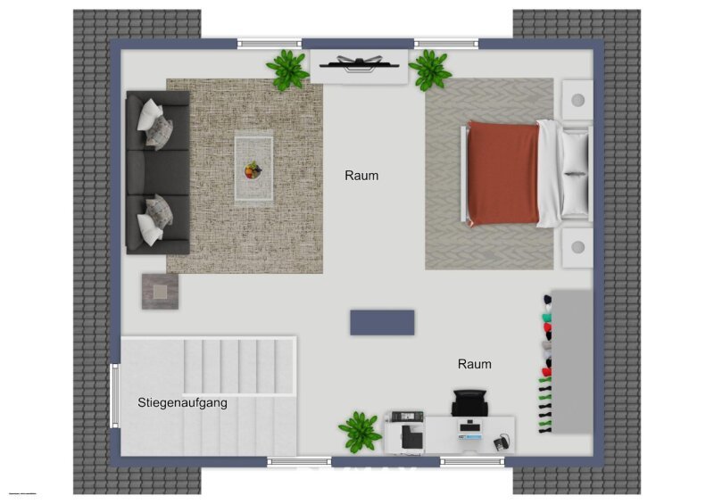 Das Obergeschoss umfasst ca. 49 m² und eignet sich hervorragend als Rückzugsort mit Schlaf- und Kinderzimmern oder einem großzügigen Arbeitsbereich. Auch hier sind der Fantasie bei der Raumplanung keine Grenzen gesetzt.