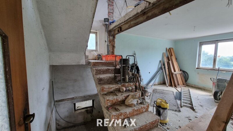 Zum Verkauf steht ein vollständig sanierungsbedürftiges Einfamilienhaus im Rohbauzustand, das sich ideal für Käufer mit handwerklichem Geschick oder für Projektentwickler eignet. Die