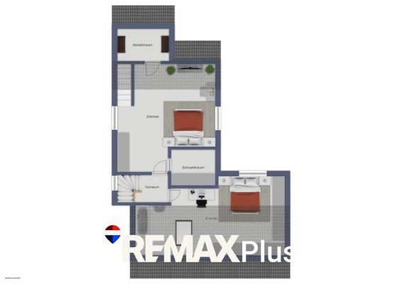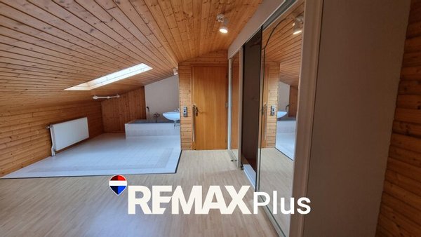 Über eine Holztreppe gelangen Sie ins Obergeschoss. Dort begrüßt ein heller Vorraum, von dem aus ein geräumiges Schlafzimmer mit angeschlossenem Schrankraum abgeht – dieses Zimmer lässt sich nach Ihren Bedürfnissen gestalten. Ergänzt wird das Stockwerk durch einen zweiten, ebenfalls sehr großen Wohn- bzw. Schlafraum, in den ein Badezimmer integriert ist.