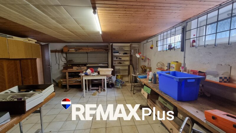 Das Haus ist voll unterkellert. Im Kellergeschoss finden Hobby-Handwerker eine Werkstatt, während eine separate Waschküche den Alltag erleichtert. Ein langer Flur führt weiter zum Heizraum sowie in einen eigenen Wellness-Bereich mit Dusche und Sauna; ein zusätzliches Bad mit Dusche und WC macht das Wohlfühlprogramm komplett.