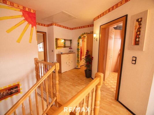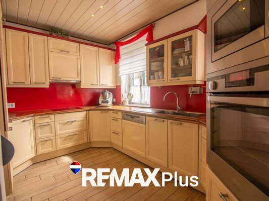Wohnhaus: ca. 210 m² Wohnfläche, massive Bauweise (38er Ziegel mit 10 cm Kork-Isolierung), voll unterkellert