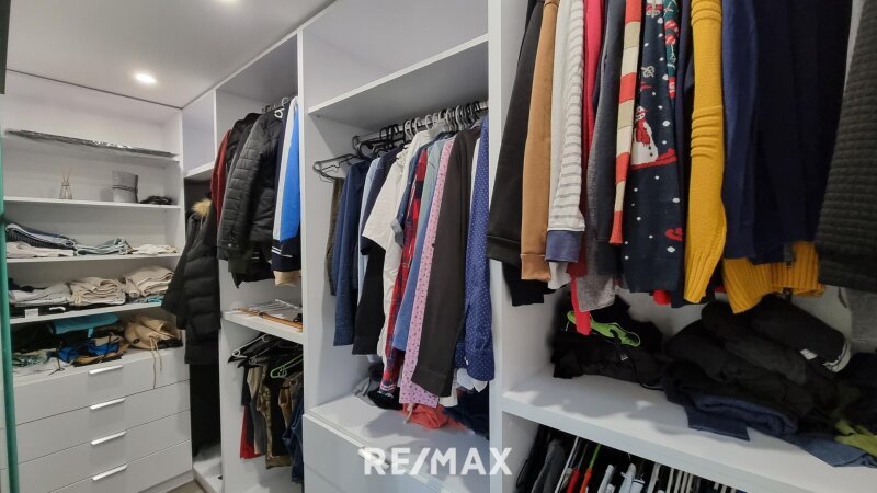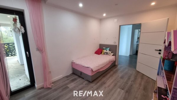 Im Obergeschoss befinden sich ein Vorraum, zwei Kinderzimmer sowie ein Schlafzimmer mit eigenem Schrankraum. Sämtliche Zimmer verfügen über einen Zugang zum Balkon. Des Weiteren steht auch im Obergeschoß ein eigenes Bad mit Dusche und WC zur Verfügung.