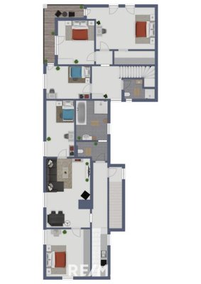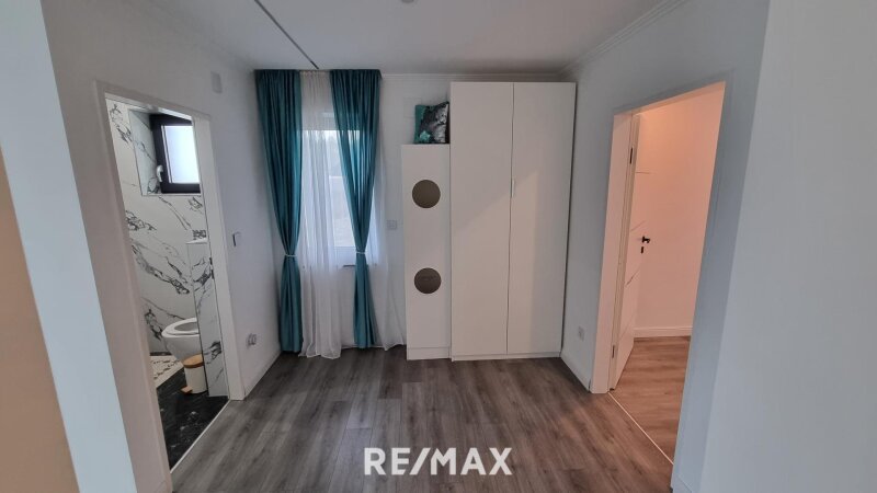 Durch einen separaten Eingang gelangt man in das Obergeschoß, in welchem Sie ein modernisiertes Bad mit vorgelagertem WC, eine Küche, ein Wohnzimmer sowie 2 Schlafzimmer vorfinden. Ideal als eine eigene zweite Einheit schaffen diese Räumlichkeiten zusätzliche Optionen bei der LIegenschaft: entweder als zusätzliche Wohneinheit für Ihre Familie, als Vermietobjekt für zusätzliche Einnahmen oder überhaupt als Anlageobjekt der gesamten Liegenschaft.