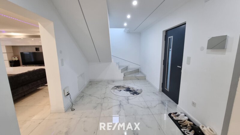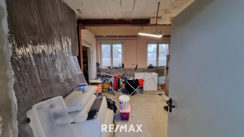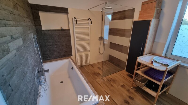Der Zubau empfängt Sie mit einem Vorraum, der genügend Platz für Garderobe, Schuhe und Jacken bietet. Die großzügige Wohnküche mit moderner Ausstattung verfügt über einen Essbereich und einen Wohnbereich und bietet direkten Zugang zur Terrasse – perfekt für gemütliche Abende oder gesellige Stunden.Das Badezimmer ist mit einer Badewanne ausgestattet, zudem gibt es ein separates WC.