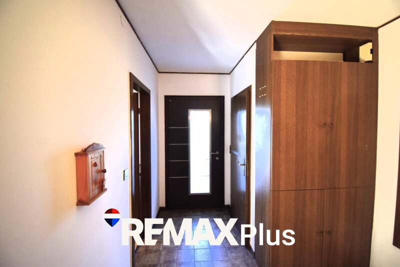 Das Erdgeschoß mit ca. 75m² Wohnfläche besteht aus Vorraum, Küche, Bad und WC, dem Wohnzimmer und einem weiteren Zimmern.