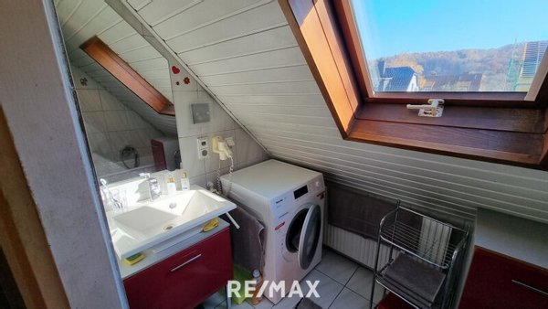 Über eine Treppe gelangen Sie ins Obergeschoss, das mit einem Schlafzimmer, einem Badezimmer mit Wanne und einem praktischen Ankleideraum überzeugt. Zusätzlich steht ein weiteres Wohnzimmer zur Verfügung, das flexibel genutzt werden kann – beispielsweise als Arbeitszimmer oder Kinderzimmer.