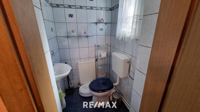 Beim Betreten des Hauses gelangen Sie über einen einladenden Vorraum in das helle Wohnzimmer, das zum Verweilen und Entspannen einlädt. Von hier aus erreichen Sie die angrenzende Küche, die ausreichend Platz für gemeinsame Kochabende bietet. Ein Gäste-WC rundet das Raumangebot im Erdgeschoss ab.
