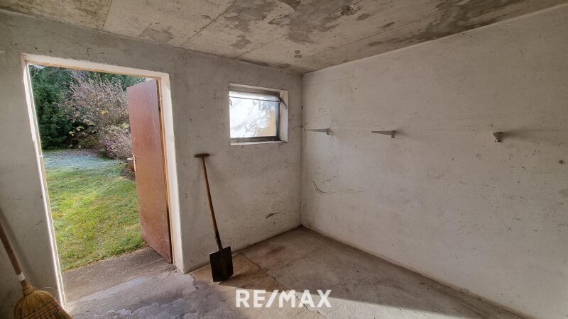 Der Keller teilt sich in einen Vorraum und vier weitere Räume, die viel Stauraum und flexible Nutzungsmöglichkeiten bieten. Einer der Räume verfügt über einen direkten Zugang in den Garten. Der Garten selbst ist schlicht angelegt und vermittelt einen pflegeleichten Eindruck. Eine praktische Außentreppe verbindet ihn direkt mit dem Wintergarten.