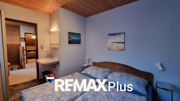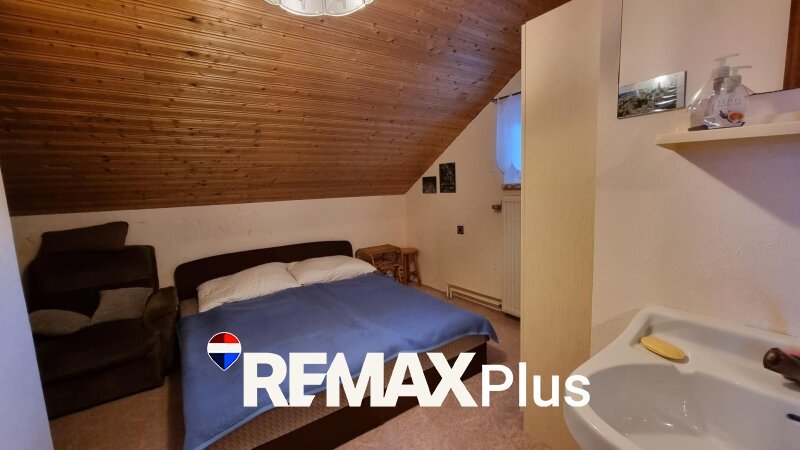 Im Obergeschoss befinden sich fünf individuell nutzbare Zimmer, die flexibel als Schlafzimmer, Gästezimmer, Büro oder Kinderzimmer eingerichtet werden können. Ein Balkon steht ebenfalls im Obergeschoss zur Verfügung und bietet einen herrlichen Ausblick auf den Garten, die umliegenden Berge und den Wald. Das Badezimmer mit Dusche komplettiert die Räumlichkeiten im Obergeschoss.