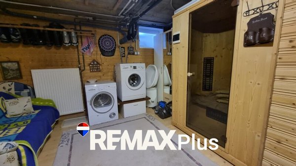 Das teil unterkellerte Haus verfügt im Kellergeschoss über einen Kellerraum mit Sauna sowie ein Kellerstüberl mit Barbereich, das sich ideal für gesellige Abende oder Feiern eignet. Ergänzt wird das Kellergeschoss durch den Heizraum. Die gesamte Kellerfläche beträgt etwa 34,59 m².