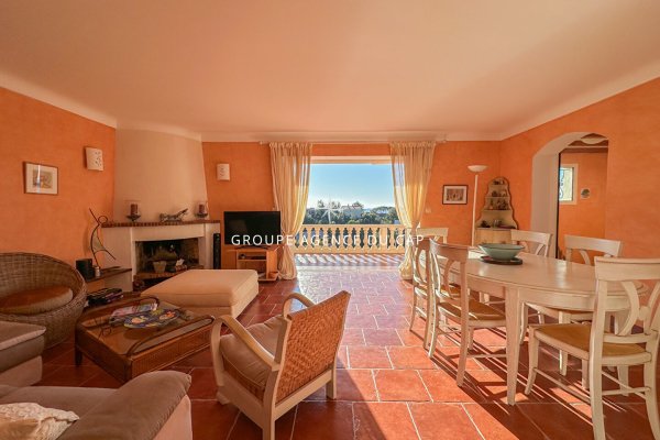 In einer Sackgasse gelegen, am Rand einer geschützten Grünfläche und nur 800 Meter vom Meer und den Geschäften entfernt, bietet diese provenzalische Villa, die dank ihrer südlichen Ausrichtung im Licht getaucht ist, einen außergewöhnlichen Panoramablick auf den Golf von Saint-Tropez und die umliegenden Hügel. Mit einer Wohnfläche von etwa 136 m² zeichnet sich das Anwesen durch großzügige Flächen und ordentliche Dienstleistungen aus. Im Erdgeschoss befindet sich ein Wohnzimmer mit Kamin, der auf eine große Terrasse hinausgeht, eine voll ausgestattete Küche, zwei Schlafzimmer, ein Badezimmer und eine Gästetoilette. Im Gartenbereich gibt es zwei zusätzliche Schlafzimmer, 1 Duschraum, 1 Badezimmer und 1 Toilette sowie einen Wohnraum mit einer Küche, die harmonisch nach außen geöffnet ist. Der Garten ist mit automatischer Bewässerung und Landschaftsbeleuchtung verziert, umgibt ein elegantes Schwimmbecken mit Strand, Poolhaus und Außendusche und lädt zur Entspannung in völliger Privatsphäre ein. Ein Doppel-Carport, ein automatisches Tor und ausreichend Stauraum runden dieses außergewöhnliche Anwesen ab.