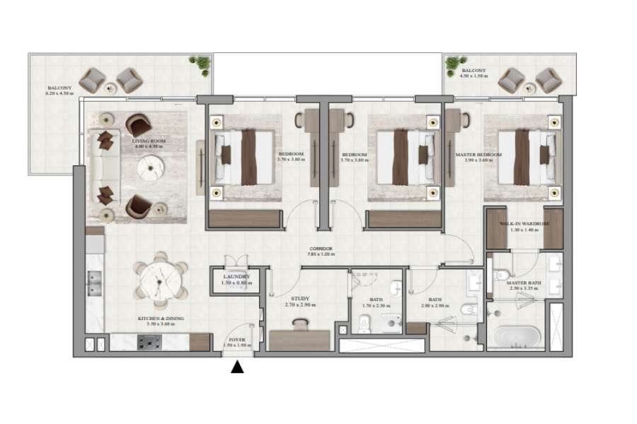 - Die Wohnung verfügt über vier Zimmer, darunter drei großzügige Schlafzimmer und drei moderne Bäder, die ausreichend Platz für Familie und Gäste bieten.