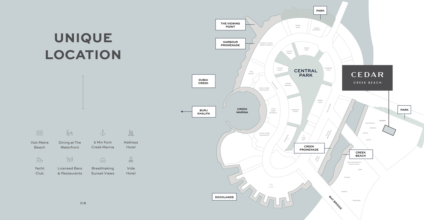 Erkunden Sie die Fahrradwege, den Dog Park und die Skating Areas oder genießen Sie Veranstaltungen im Lawn Amphitheatre. Der direkte Zugang zur Creek Beach Promenade sorgt für erholsame Spaziergänge am Wasser. Freue dich auf die Nähe zu den Vida & Address Hotels und all den Annehmlichkeiten, die diese exklusive Wohngegend bietet. Willkommen in deinem neuen Traumdomizil!
