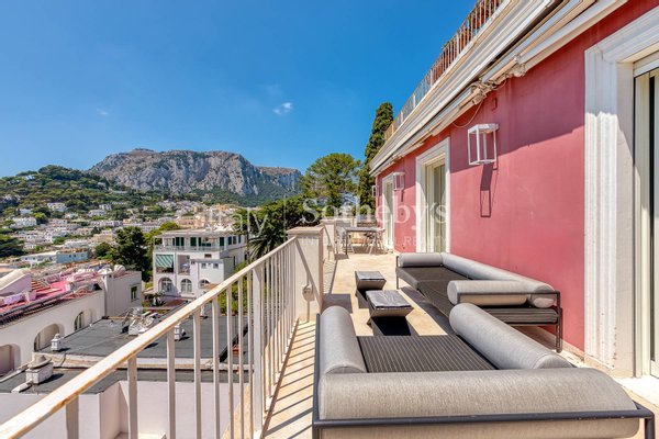 In der zentralen Via Reginaldo Giuliani, in einem eleganten Gebäude mit Aufzug, befindet sich dieses außergewöhnliche, komplett renovierte Penthouse. Ein großzügiger Wohnbereich mit Küche führt auf die Panorama-Terrasse, die einen Rundumblick auf ganz Capri bietet. Die Wohnung, die mit sämtlichen Innen- und Außenmöbeln verkauft wird, ist das Ergebnis einer kürzlich durchgeführten Renovierung, die sowohl funktional als auch designorientiert ist. Der Schlafbereich besteht aus drei Schlafzimmern, darunter die Master-Suite mit eigenem Bad, die auf die wunderschöne Terrasse blickt. Ein Schmuckstück, bezugsfertig im Herzen der schönsten Insel des Mittelmeers.