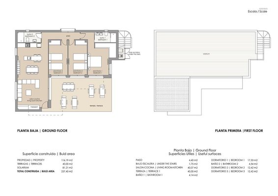 Diese modernen und eleganten eingeschossigen Villen verfügen über eine konstruierte Fläche von ca. 231 m² - 237 m² (inklusive Terrassen) mit