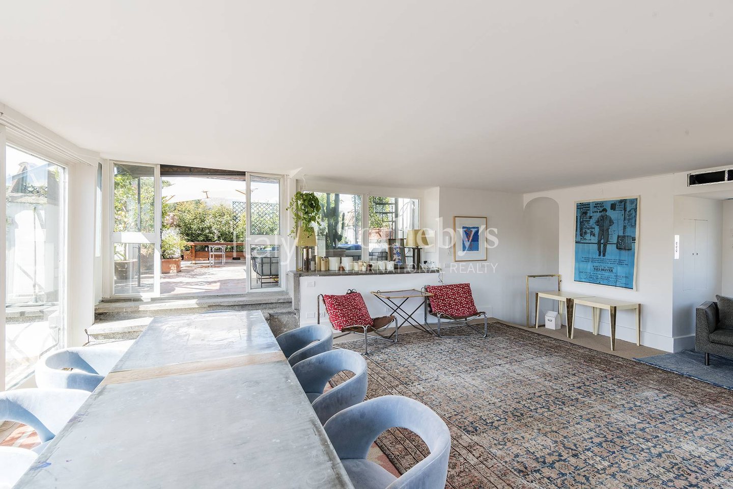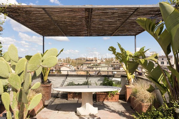 Der Außenbereich, reich an Pflanzen und geselligen Ecken, bietet einen herrlichen Blick über die Dächer Roms in einer Atmosphäre absoluter Ruhe und Privatsphäre. Die Residenz zeichnet sich durch große Fensterfronten aus, die malerische Ausblicke auf den Platz rahmen und in jedem Raum warmes, einhüllendes Licht hereinlassen, wodurch ein ständiger Dialog zwischen Innen- und Außenbereich entsteht.