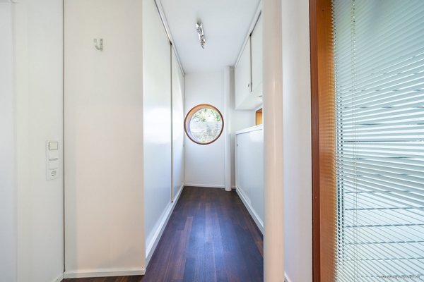 Im Untergeschoss erwarten Sie mehrere Bereiche mit zahlreichen Einbauschränken und Stauraum, ein Sport-/Fitnessraum sowie ein großer Gästebereich. Das Bad fungiert hier zusätzlich als Waschküche und verfügt über eine große, verglaste Dusche und viel Platz für Waschmaschine und Trockner. Daran schließt sich der Gästeschlafbereich mit ebenso großen Fenstern zum Garten an. Trotz der Souterrainlage bieten die raumgroßen Fenster viel Licht und die Deckenhöhe von ca. 2,57 m ein optimales Wohnraumgefühl.