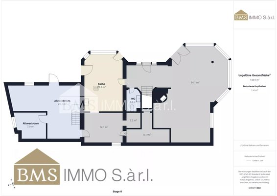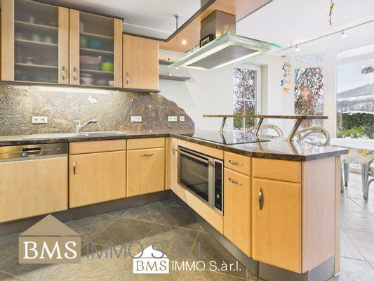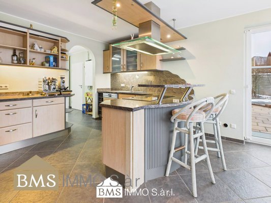 - offener Küchenbereich mit hochwertiger Einbauküche, Kochinsel und Esstheke. Die Küche ist ausgestattet mit einer Granit-Arbeitsplatte und allen relevanten Elektrogeräten - Zugang zum innenliegenden Abstellraum, der auch als Kühlraum nutzbar ist