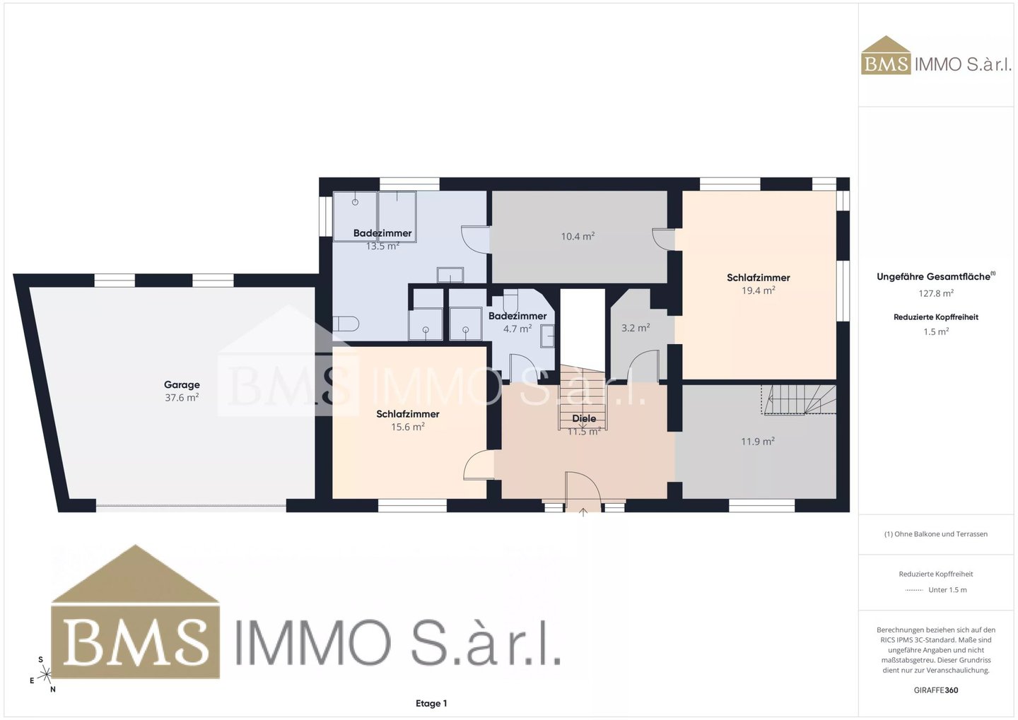 - Dachbodenausbau ( ausgestattet mit Fliesenboden, Fußbodenheizung, Kalt- und Warmwasseranschlüssen )