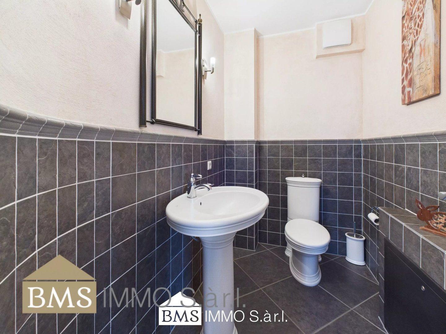 Das Badezimmer ist mit einer luxuriösen Badewanne ausgestattet, die zum Entspannen einlädt. Praktische Fensterläden sorgen für Privatsphäre und Schatten, während die Außenbeleuchtung das Haus optimal in Szene setzt. Die gepflegte Gartenanlage rundet das Angebot ab und bietet eine hübsche Aussicht.