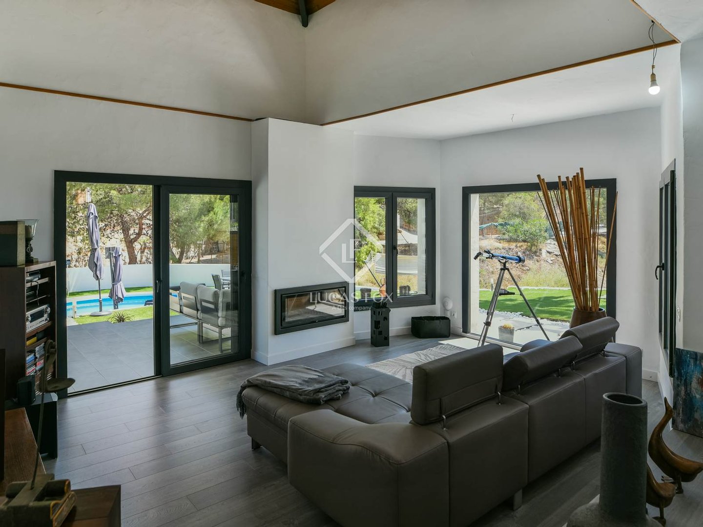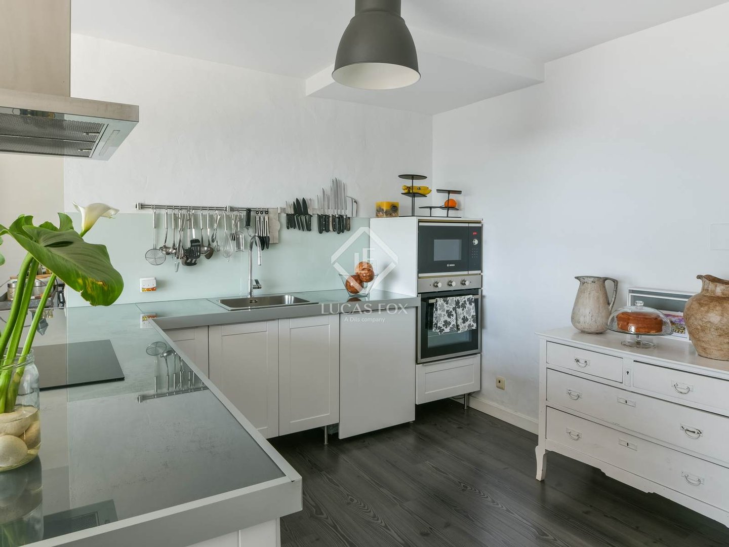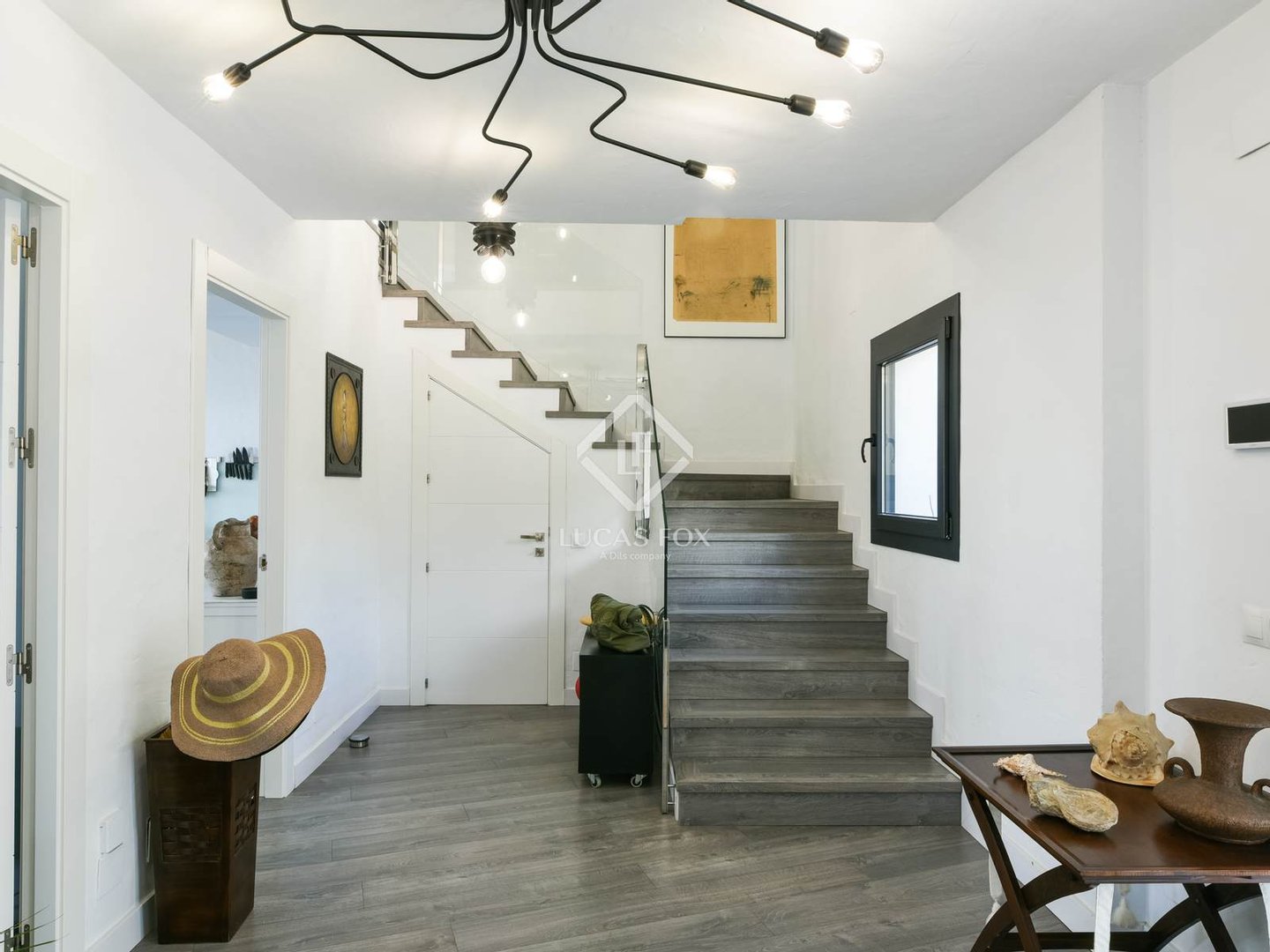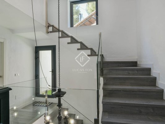 Von außen hat man Zugang zur Lobby, die nach vorne mit einem charmanten Wohnzimmer mit Zugang zu einer fantastischen verglasten Veranda verbunden ist. Auf der linken Seite befindet sich das geräumige Wohn-Esszimmer, das über zwei Ebenen und Zugang zu einer weiteren Veranda verfügt. Und auf der rechten Seite die modern ausgestattete Küche, offen und mit Büro und praktischer Speisekammer. Auf dieser Etage befindet sich auch ein Gäste-WC.