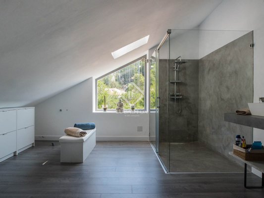 Vom Flur aus gelangt man über eine bequeme Treppe in den ersten Stock, wo sich drei geräumige Schlafzimmer befinden. Zwei von ihnen verfügen über ein eigenes Bad und das Hauptzimmer verfügt auch über ein Ankleidezimmer. Das Hauptschlafzimmer und eines der Schlafzimmer haben Zugang zu schönen und praktischen Terrassen für diejenigen, die Privatsphäre suchen. Und für mehr Komfort verfügt diese Etage über einen Gartenbereich sowie einen Spielbereich, Räume, in denen Sie Ruhe genießen können.