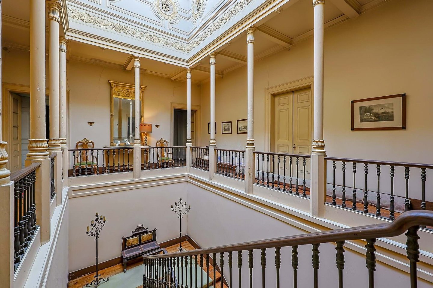 Das angelegte Gelände ist mit jahrhundertealten Bäumen gefüllt, darunter Araucarias, Platanen und Dracaenas. Der historische Uhrturm, die Ställe, die Personalunterkünfte und die Garagen vervollständigen dieses außergewöhnliche Anwesen und bieten sowohl Pracht als auch Funktionalität auf seinem weitläufigen Grundriss.