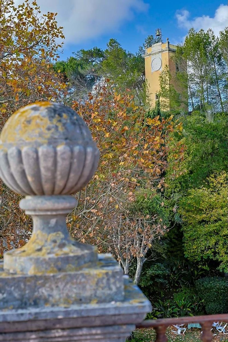Das angelegte Gelände ist mit jahrhundertealten Bäumen gefüllt, darunter Araucarias, Platanen und Dracaenas. Der historische Uhrturm, die Ställe, die Personalunterkünfte und die Garagen vervollständigen dieses außergewöhnliche Anwesen und bieten sowohl Pracht als auch Funktionalität auf seinem weitläufigen Grundriss.