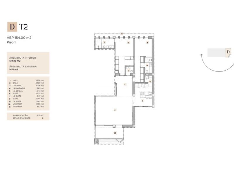 Die T2 zeichnen sich durch das Gleichgewicht zwischen Geräumigkeit, Intimität und Eleganz aus. Jede Einheit bietet etwa 140 m² Innenfläche und 14 m² Balkone, sodass Sie in jedem Zimmer komfortabel und mit natürlichem Licht leben können.