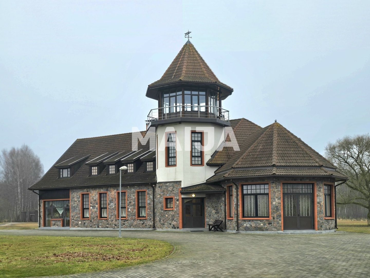Im Herzen des Anwesens stehen vier solide Gebäude, die durch gepflasterte Wege verbunden und von offenen Grünfeldern eingerahmt sind. Das 378 m² große Wohnhaus ist sowohl luxuriös als auch authentisch, mit einem markanten Turm und Innenräumen reich an Jagdcharakter – dekoriert mit Kronleuchtern, kunstvollen Möbeln und beeindruckender Präparation, darunter eine auffällige Bärenausstellung.