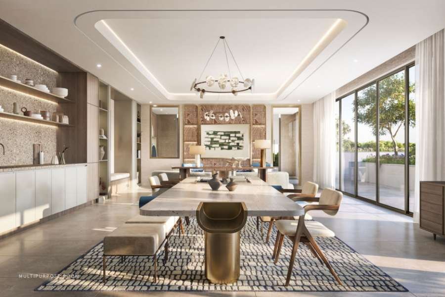 Treten Sie nach draußen auf die große Terrasse und genießen Sie den atemberaubenden Blick auf das Grün und den Golfplatz von Emaar South. Dieser Außenbereich eignet sich perfekt für Mahlzeiten im Freien, morgendliche Yoga-Sitzungen oder einfach nur, um mit einem guten Buch die Sonne zu genießen.