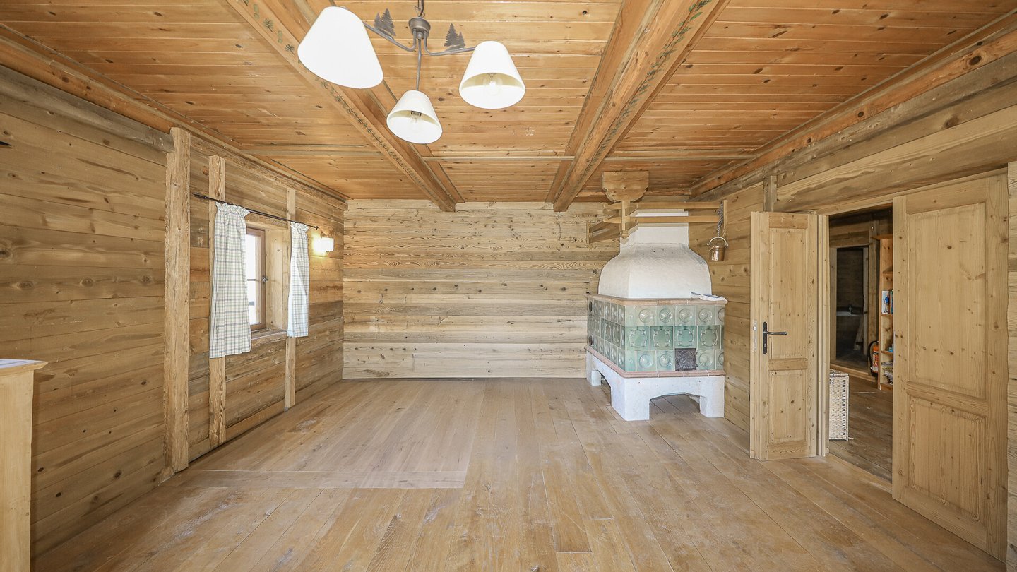 Im Obergeschoss liegt das große Masterschlafzimmer mit Kachelofen sowie zwei weitere Schlafzimmer.